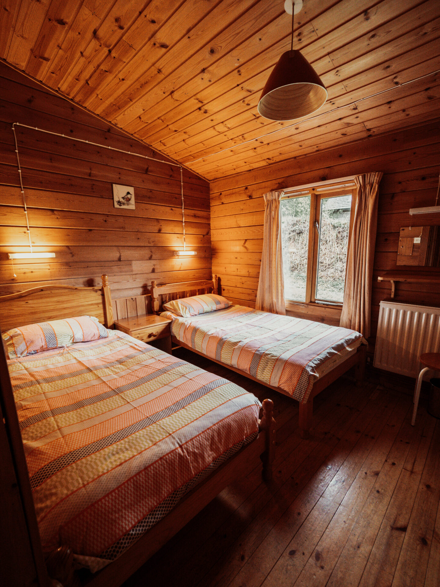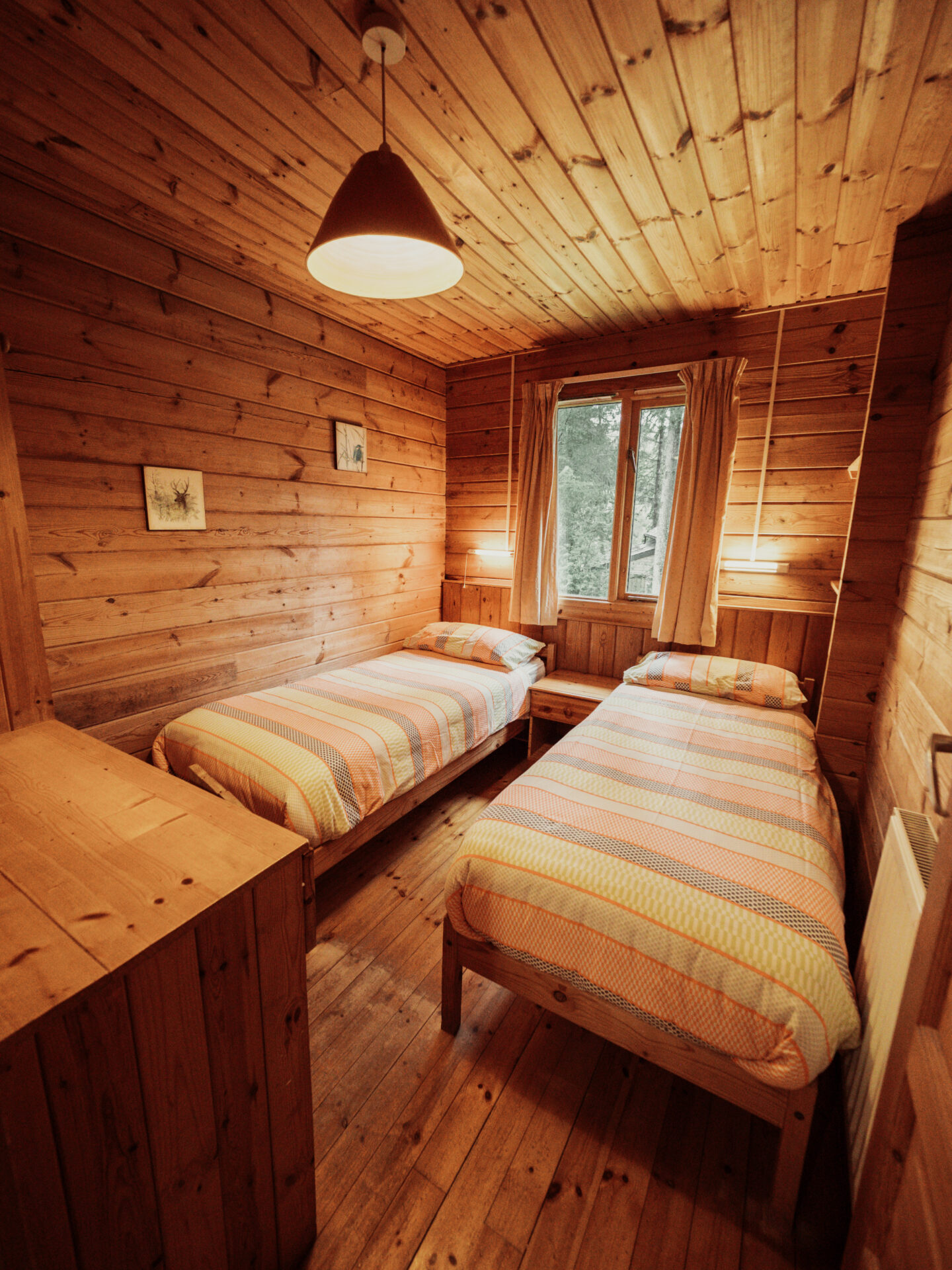 Gorse sleeps up to seven guests and exudes the charm of a true log cabin retreat. Our last remaining original cabin—crafted from Finnish logs by the Edwards family—has been recently revamped, creating a brighter, open-plan interior that’s perfect for relaxed family getaways. This single-storey cabin features a welcoming veranda and two gentle steps leading to the bedrooms and bathrooms.